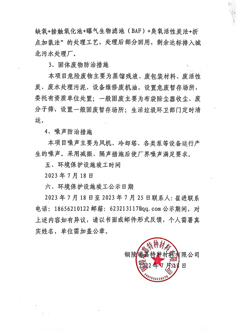 安徽瑞嘉環(huán)保驗(yàn)收第一次公示